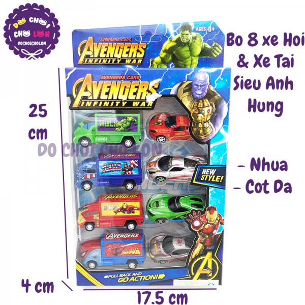 Đồ chơi 8 Xe Hơi & Xe Tải siêu anh hùng bằng nhựa chạy trớn 757-16B là bộ đồ chơi mô hình các loại xe hơi oto, xe tải nhiều màu sắc thiết kế theo kiểu dáng các siêu anh hùng bằng nhựa. Bộ sản phẩm bao gồm 8 mô hình hơi ô tô đủ mẫu khác nhau chắc chắn sẽ làm bé thích thú và hào hứng với bộ đồ chơi ngay từ cái nhìn đầu tiên, bộ sản phẩm dành cho bé yêu thích các loại xe mô hình hình siêu anh hùng. Sản phẩm dành cho các bé từ 5 tuổi trở lên.