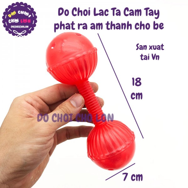 Đồ chơi lắc tạ 2 banh cầm tay phát ra âm thanh cho bé bằng nhựa là loại đồ chơi lục lạc phát ra âm thanh vui tai khi bé cầm lắc với thiết kế cho bé dễ cầm màu sắc tươi sáng, chất liệu an toàn được sản xuất tại Việt Nam, tin rằng đây sẽ là món đồ chơi lục lạc lắc 2 banh cầm tay loại nhỏ cho bé được các mẹ yêu thích. Đồ chơi lục lạc này dành cho các bé sơ sinh từ 1 tuổi trở lên
