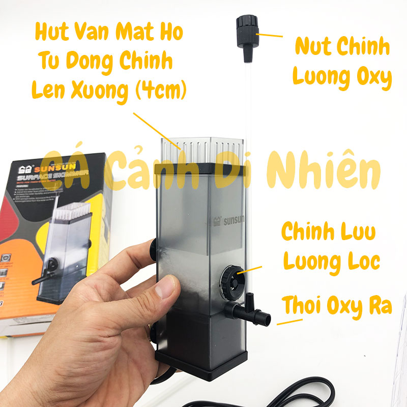 + Phần hút váng tự động điều chỉnh lên xuống theo mặt hồ (tối đa 4 cm).